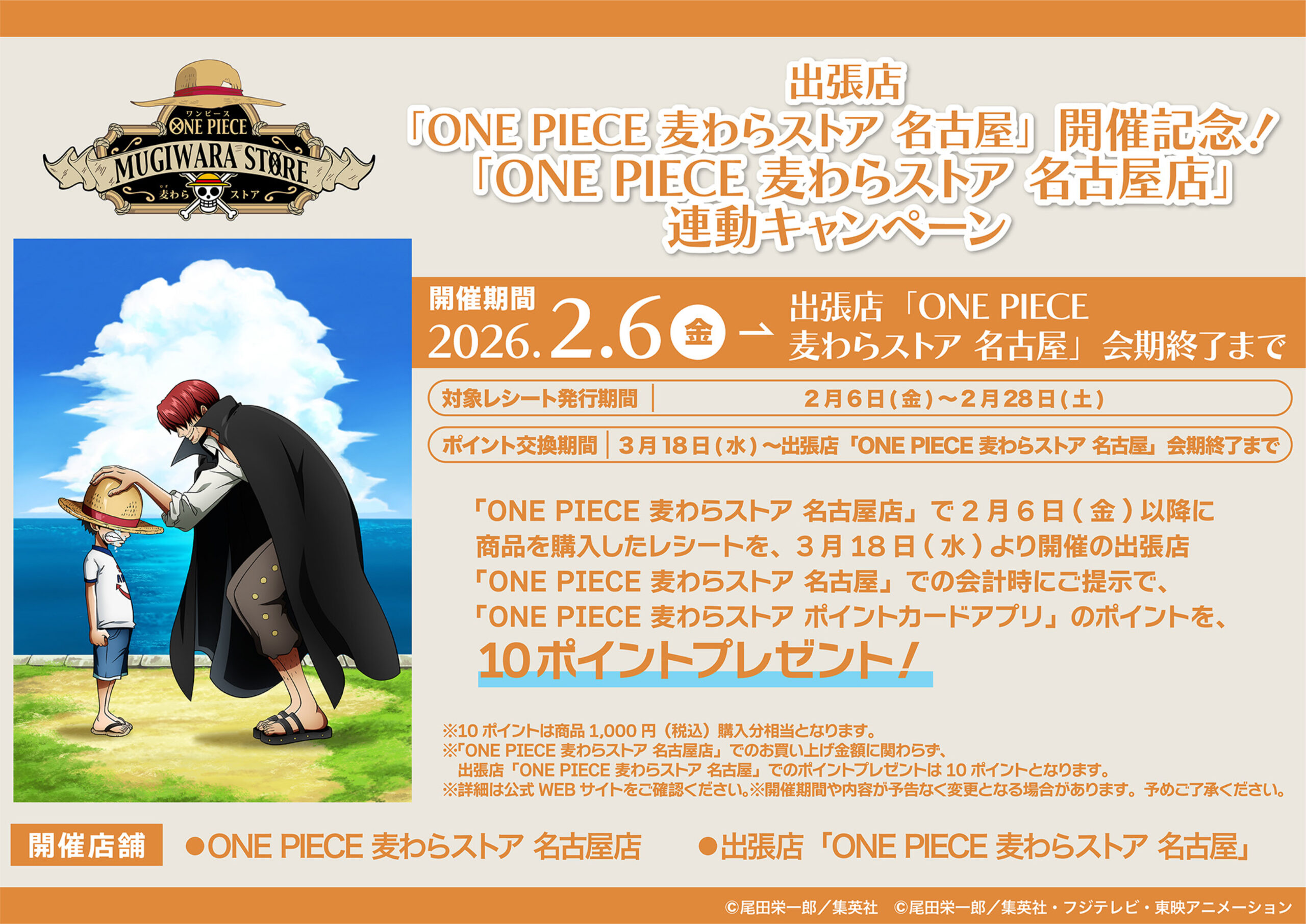 【出張店「ONE PIECE 麦わらストア 名古屋」開催記念!「ONE PIECE 麦わらストア 名古屋店」連動キャンペーン】
